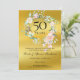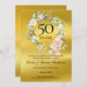 Apresentando uma delicada camada floral de aquarela em uma película de ouro, este cômico de 50º aniversário de casamento, exceto o convite para data, pode ser personalizado com sua ajuda especial para salvar as informações de data. O reverso apresenta uma garland floral correspondente que enquadra suas datas de aniversário em texto elegante em um fundo de película dourada. Projetado por Thisnotme©