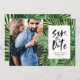 Cartões salve a data modernos de folhagem de palma tropical. Texto de script pintado à mão. Parte de uma coleção de tendência de verão. A cor de fundo pode ser alterada.