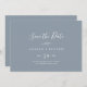 Este mínimo de azul-folha e branco horizontal para salvar o cartão de data é perfeito para um casamento elegante. A design apresenta uma simples silhueta verde em branco sobre um fundo azul empoeirado com estilo minimalista clássico.
