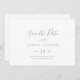 Este mínimo azul empoeirado, horizontal, salvo o cartão é perfeito para um casamento elegante. A design apresenta uma simples silhueta verde em azul-ardósia com estilo clássico minimalista.
