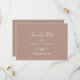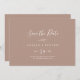 Esse mínimo horizontal neutro de folha salvo o cartão de data é perfeito para um casamento de boho. A design apresenta uma simples silhueta verde de folha em tom natural de terra, com estilo minimalista da boêmia do deserto.