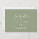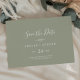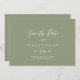 Este mínimo de sábio verde verde, salvo o cartão de data é perfeito para um casamento de boho. A design apresenta uma simples silhueta verde de folha verde em cor verde empoeirada com estilo minimalista de vassoura de montanha.