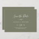 Este mínimo de folha verde-escura e horizontal, para salvar o cartão de data é perfeito para um casamento de boho. A design apresenta uma simples silhueta verde-verde-verde em verde-oliva com o estilo minimalista da boêmia montanhosa.