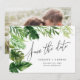 Linda foto de folhagem tropical em aquarela moderna para salvar a data. Texto com letra bonita. Parte de uma coleção de celebração de casamento de verão.