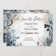 O design apresenta um arranjo etéreo e macio de tons sujos, azuis e mudados, com folhagem delicada, bagas e flores que circundam as bordas. A estrutura é predominantemente decorada com folhas do estilo aquarela, flores de algodão e bagas escuras, dando a ela uma sensação rústica mas elegante. A área central é deixada vazio, ideal para texto ou detalhes de eventos, cercada por formas orgânicas que evocam um humor sereno e autóctone. Este sofisticado, inspirado na natureza funcionaria lindamente para uma coleção de casamentos com uma atmosfera romântica e eterno.