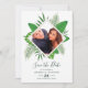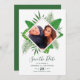 Cores d'água pintando folhas tropicais de praia Cartões salve a data de celebração de casamento com sua própria foto personalizável para seus eventos específicos.