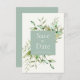 Celebre seu próximo dia especial com nossa Folhagem Verde Eucalipto Verde e Elegante Personalizada Salve o Cartão de Data. Uma mistura de sofisticação e charme, o design alegre deste cartão apresenta as tons verdes suaves de folhagem de eucalipto contra um pano de fundo verde de sábio complementar. O cartão permite que você personalize sua mensagem — uma maneira única de anunciar seu dia especial. Criado com amor por Mylini Design, com anos de experiência em criar convites que tocam corações e criam memórias. Não hesite em apertar o botão 'comprar agora' para adicionar estas cartas requintadas ao seu carrinho de compro. Se precisar de assistência ou itens correspondentes para complementar o seu cartão, sinta-se à vontade para me contactar. Sua satisfação é minha prioridade!