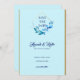 Folhas azuis modernas e elegantes numa moldura geométrica dourada com listras douradas de ambos os lados. O fundo é um azul bebê