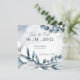 Elegante Chic Folhas de Eucalipto em Azul Poenta Save the Date de Casamento Elegante. Anuncie seu dia especial com estilo com nossos cartões "Folhas de Eucalipto em Azul Poenta Save the Date de Casamento Elegante". Perfeito para casais que amam uma mistura da elegância da natureza e sofisticação moderna, este design apresenta delicadas folhas de eucalipto em uma tonalidade suave e azul poenta. O efeito sutil de aquarela adiciona um toque de romance, enquanto a tipografia limpa e minimalista garante que sua mensagem se destaque.