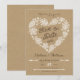 Elegante, mas casual, este cartão de Salve a Data é perfeito para qualquer amante da natureza. Folhas de renda estilizadas, pinhas, bolotas, flechas e flores formam um coração com um visual de papel kraft rústico ao fundo. Personalize com seu próprio texto. Ilustração original de pj_design. Por favor, verifique minha loja para mais como este.