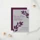 Estes elegantes cartões salve a data de casamento apresentam um design rústico, mas moderno, com ranhuras de folhas de cor roxa, magenta, ou de cor de água de morango entrando de ambos os lados da carta em um fundo de cinza. A tipografia é única e elegante, com textos justificados tanto à esquerda como à direita. Simples e na moda, estas cartas são a maneira perfeita de deixar seus amigos e família saberem sobre seu próximo casamento.