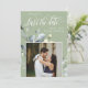 Este convite de "save the date" apresenta arranjos elegantes de folhagens de aquarela e folhas, bela caligrafia e uma fonte tipográfica serif simples com uma moldura de foto quadrada em um fundo verde empoeirado e código QR para um visual limpo, minimalista e moderno, que é uma maneira bonita de informar sobre o seu casamento próximo. Anuncie para sua família e amigos que você está se casando com este convite e adicione um toque pessoal com belas fotos de você e seu futuro cônjuge. A simplicidade deste design adiciona um toque de elegância ao seu casamento. Funciona bem com muitos temas de casamento e definitivamente é um grande complemento para o seu casamento. Basta personalizar os nomes e a redação em algumas etapas fáceis e personalizar o cartão de convite com sua foto do casal feliz e substituir o código QR pelo seu.