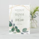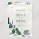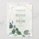 O quadro geométrico verde e as folhas douradas Salvem a data Nosso versátil cartão de casamento se mistura perfeitamente com qualquer tema de casamento. A combinação elegante de uma estrutura geométrica dourada, folhas verdes e douradas, e um fundo de tinta verde-clara garante a harmonização perfeita com as configurações modernas e tradicionais. Quer você esteja planejando uma cerimônia íntima de jardim ou um caso de grande salão, esta carta adiciona sem esforço um toque de beleza eterno.