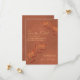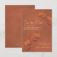Os elegantes cartões de aviso de casamento com data de reserva apresentam um design rústico, mas moderno, com raminhos de folhas de aquarela pintadas à mão em cor de ferrugem ou umber queimado entrando em ambos os lados do cartão sobre um fundo de terracota marmorizado. A tipografia é única e elegante, com texto justificado à esquerda e à direita. Simples e sofisticados, esses cartões são a maneira perfeita de informar aos amigos e familiares sobre o casamento.