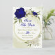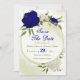 Bonito, salve o cartão de data com flores azuis e brancas reais e folhas verdes em uma elegante estrutura geométrica dourada Os detalhes da brilho dourada são simulados. PARA MAIS PRODUTOS CORRESPONDENTES, clique na coleção acima ou entre em contato comigo
