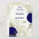 Bonito, salve o cartão de data com flores azuis e brancas reais e folhas verdes Os detalhes da brilho dourada são simulados. PARA MAIS PRODUTOS CORRESPONDENTES, clique na coleção acima ou entre em contato comigo