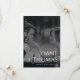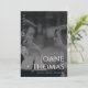 Anuncie seu dia especial com nosso cartão "Save the Date de casamento com fonte romana elegante". Este cartão lindamente elaborado apresenta seus nomes personalizados em uma fonte branca requintada com caracteres romanos clássicos, adicionando um toque de elegância atemporal. O estilo serifado moderno aprimora o design sofisticado, tornando-o perfeito para qualquer tema de casamento.