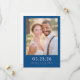 Este convite de casamento apresenta uma fotografia central de dois indivíduos, emoldurada por uma borda azul-marinho sólida. Os tons quentes na foto, incluindo tons de pele suaves e verdes terrosos do fundo desfocado, contrastam lindamente com o azul-marinho frio. O design usa tipografia serifada em negrito para a data e os nomes, criando um visual elegante, mas casual. O clima geral é alegre e antecipatório, capturando um momento espontâneo que enfatiza a autenticidade e o calor. Perfeito para casais que desejam definir o tom do seu dia especial com um toque de elegância natural.