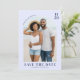 Este cartão de save the date de casamento apresenta um tema de praia casual com uma fotografia central de dois indivíduos em pé na areia, enquadrada por um arco de bordas suaves. A paleta de cores inclui azuis e brancos suaves, evocando uma atmosfera oceânica serena, enquanto a tipografia usa uma hierarquia clássica para destacar detalhes importantes. Elementos de texto personalizáveis permitem a personalização, tornando-o perfeito para anunciar seu dia especial. O clima geral é alegre e convidativo, capturando a essência de uma celebração relaxada à beira-mar.