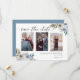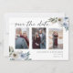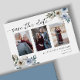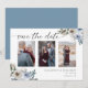Cartão de save the date de casamento azul empoeirado floral elegante com foto.