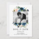 Lindo cartão de aviso de data de casamento com foto floral apresenta gráficos florais pintados à mão em tons ricos de azul marinho e rosa / pêssego e fonte de estilo de letra à mão. Por favor, entre em contato comigo para qualquer ajuda na personalização ou se você precisar de qualquer outro produto com este design.