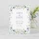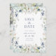 Imagem Botânica Elegante Salvar a Data. Essa coleção apresenta folhas verdes, pintadas à mão, salgadeiras e delicadas bagas azuis empoeiradas, oferecendo uma mistura cativante de sofisticação e charme. Com a opção de marinho azul ou sábio texto verde, você pode personalizar esta suíte para complementar perfeitamente seu tema de casamento e seu estilo pessoal. De encontros íntimos a celebrações grandiosas, a Suíte de Casamento de Botânicos Verdes e Marinhos Azuis Sage estabelece a palco de uma ocasião verdadeiramente inesquecível.