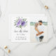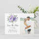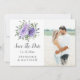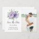 Estes cartões salve a data apresentam um design floral de cor aquosa com rosas roxos empoeirados e folhagem de folha de eucalipto. Eles fazem parte de uma coleção que inclui um cheio de convites para casamento e artigos de papelaria. Personalize-os com o seu próprio texto e fotografia. Visite nossa loja para ver o cheio de itens que você pode personalizar para o seu casamento.