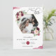 Anuncie sua data de casamento com esta linda foto de casamento. Salve o cartão de data. Design com uma bela estrutura geométrica com cobertura de fotos de flores mostrando sua imagem. Delicar manchas de aquarela detalhes de canto e caligrafia moderna escrita manual. Voltar com as mesmas manchas de aquarelas em cascata e buquê floral no centro com nomes de cheio ou nomes de casais e data. Design com flores numa bela mistura de burgundy, cranberry, blush, creme e matizes cor-de-rosa. O mesmo design com manchas de aquarela também está disponível. Parte da nossa coleção "Romance Floral" com uma variedade de produtos de coordenação disponíveis. Visite a coleção completa clicando no link abaixo "Outros produtos desta coleção".