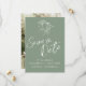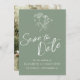 Simples casamento de desenho botânico, salve o convite de data em verde e branco com sua própria foto no verso. Edite esta opção, salve o cartão de casamento com seus próprios nomes e data e a foto de sua escolha no verso. Desenho único de design e flor de mão original de Sarah Trett somente para www.mylittleedenweddings.com Você dá suporte ao artista original diretamente quando compra este produto.