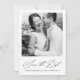 Elegante caligrafia e parte de trás do cartão de foto azul escura para cartão de save the date de casamento.