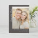 Este convite de casamento "save the date" apresenta um design clássico e romântico com uma fotografia central de dois indivíduos em um ambiente ao ar livre, rodeado por tons quentes de bege e matizes dourados. O layout inclui uma elegante escrita cursiva para "Save the Date" no lado esquerdo, enquanto a seção inferior apresenta os nomes do casal em uma fonte serifada formal, seguida pelos detalhes do evento em um tipo sans-serif limpo. O estilo geral é simples, mas sofisticado, criando uma atmosfera convidativa que captura a alegria e a expectativa da celebração que se aproxima. Perfeito para casais que desejam definir o tom do seu dia especial, este design equilibra a calidez visual com informações essenciais em uma composição harmoniosa.