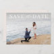 Anuncie sua data de casamento com esta foto moderna e elegante, salve a carta de encontro. Apresenta tipografia clássica com uma escrita caprichosa. Esta fotografia de solteiro de tipografia mista, exceto o anúncio de data é perfeito para qualquer tema de casamento. Personalize adicionando fotos, nomes, data, hora e outros detalhes do casamento.