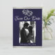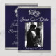 Reserve A Data Foto, Corações e Fita - Azul Marinho/Prata