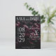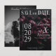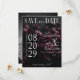 Anuncie seu casamento com uma elegância atemporal usando este cartão de "Save the Date" com foto no estilo de revista. O design apresenta um fundo escuro e romântico de peônias profundas que criam um clima luxuoso e dramático. O layout da frente destaca seus nomes e detalhes do casamento em um estilo editorial moderno, enquanto a parte traseira apresenta um layout de foto completa para os casais personalizarem com sua imagem favorita. Perfeito para definir o tom de uma celebração de casamento sofisticada, sombria e inesquecível.