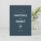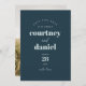 Foto da Tendy Azul Moderna Salve a Data apresenta emparelhamento de tipo moderno em cores ousadas e modernas, juntamente com uma foto de cheio no verso.