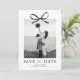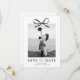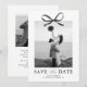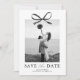 Anuncie sua próxima celebração com um estilo atemporal com esses modernos cartões de save the date de casamento. Projetados com um fundo branco crocante, a frente apresenta um impressionante centro de foto acentuado por um laço de aquarela preto clássico, adicionando um toque de romance e sofisticação.