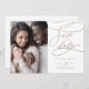 Esta fotografia romântica de caligrafia em ouro, para salvar o cartão de data é perfeita para um casamento simples. O clássico moderno design apresenta espirais de rico e turbilhões brancos com belíssima e elegante tipografia de folha de ouro de champanhe com letra falsa.