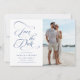 Casamento romântico azul salve a data com a inscrição elegante e romântica da caligrafia suave com uma foto. Perfeito para qualquer estação. Para uma personalização mais avançada deste design, clique no BOTÃO FERRAMENTA DESIGN AZUL acima!