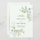 Este cartão elegante de salvar a data do casamento apresenta flores silvestres pintadas à mão em aquarela em amarelo manteiga, verde sage, verde empoeirado e azul claro com uma foto e mais informações no verso. Para uma personalização mais avançada deste design, clique no BOTÃO DE FERRAMENTA DE DESIGN AZUL acima! Itens correspondentes também estão disponíveis.