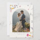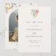 O Wildflower Grace Modern Watercolor Photo Wedding Save the Date é uma maneira fresca e elegante de anunciar sua celebração iminente. Com uma delicada borda de flores silvestres em aquarela e um layout moderno e arejado, este design emoldura lindamente sua foto de noivado favorita, mantendo a data do casamento clara e memorável.