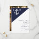 Este convite de casamento náutico minimalista azul marinho e branco pode ser personalizado com suas informações em tipografia moderna e uma foto especial no verso. Projetado por Thisisnotme©