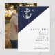 Reserve A Data Foto de casamento com monograma náutico azul marin