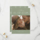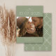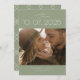 Um moderno cartão Save The Date que foca na data em grandes números em negrito contra um fundo verde sábio, tem um wisp de caligrafia e roteiro de topografia moderna adicionando apenas a nuança necessária. Personalize facilmente o nome, a data, o local e a foto para torná-lo seu.