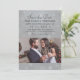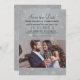 Casamento elegante e chic, salve o anúncio da data. Personalize com texto personalizado e uma foto de noivado da noiva e do noivo. Perfeito para uma comemoração na véspera de um ano novo, mas design pode ser personalizado para outras datas de casamento também. Cinzas de prata e platina com esquema de cor preta.