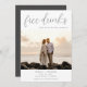 Cartões salve a data de destino na praia são para o casal divertido que mal pode esperar para compartilhar sua data de casamento com sua família e amigos. Engraçado design de "Bebidas grátis (e vamos nos casar) em uma fonte bonito de script - personalize essa data com sua foto, nomes, data do casamento e local.