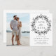 Este cartão de salvar a data do casamento elegante apresenta uma coroa de flores silvestres com a silhueta da sua foto e as iniciais do casal no verso. Para uma personalização mais avançada deste design, por favor clique no BOTÃO FERRAMENTA DE DESIGN AZUL acima!