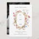 Um elegante casamento de vassoura salve o anúncio de data com uma moldura de pílula dourada cercada por flores silvestres de aquarela em madrugada com a data do seu casamento no centro. Personalize com seus detalhes na fonte da cinza. Adicione sua foto ao contrário.