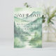 Montanhas névoas encantadas com aquarela e floresta com árvores de abeto para um destino rústico ou celebração de casamento ao ar livre.