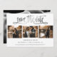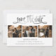 Elegante casamento prateado 4 cartões salve a data com caligrafia moderna. Personalize facilmente este cartão com suas imagens e detalhes de casamento, incluindo um site de casamento.