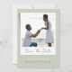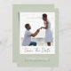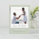 Anuncie seu próximo casamento com estilo de eterno usando este belamente moderno cartão de data salvo, criado para casais que apreciam a simplicidade com um toque de elegância. A frente destaca sua foto favorita, bordada em branco e colocada contra um fundo verde de sábio suave para um olhar refinado e romântico. Personalize-o com sua foto, nomes, data de casamento e local para criar uma primeira impressão polida e pessoal. A parte traseira contém texto limpo e totalmente personalizável para compartilhar detalhes extras com seus convidados. Ideal para casal que adoram um design mínimo, na moda que se sinta pessoal, eterno e facilmente sofisticado.